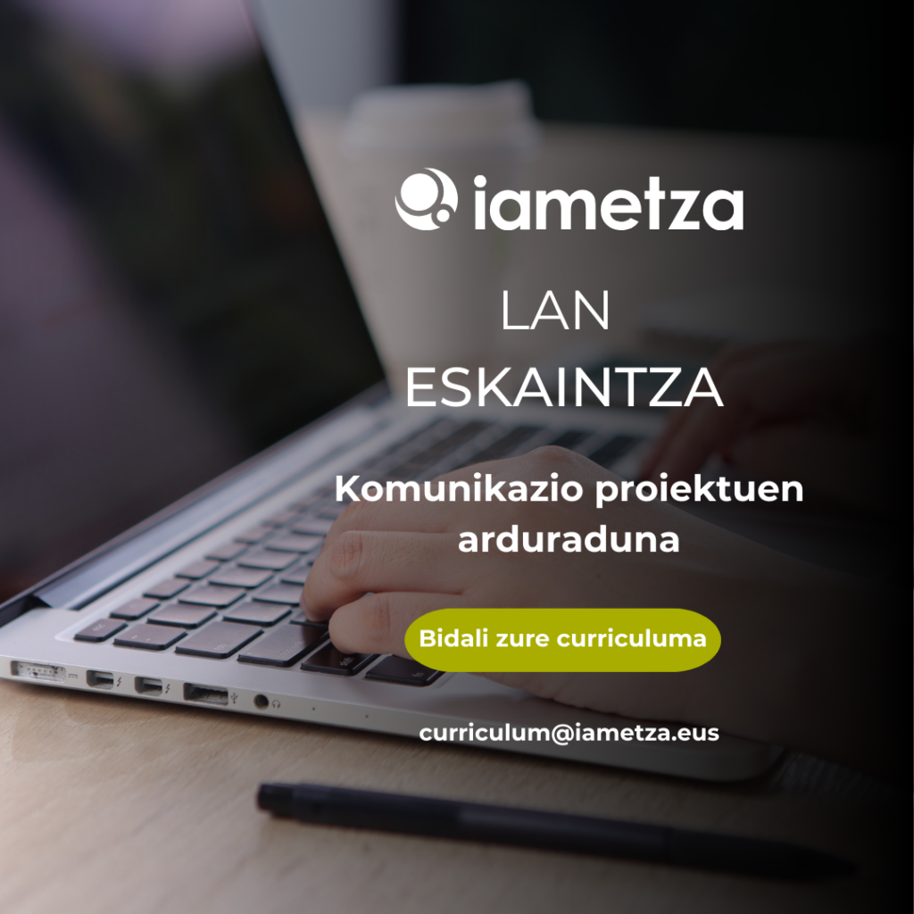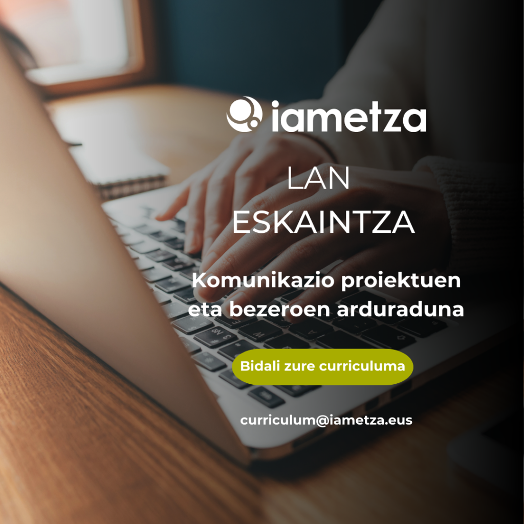 Gure taldea handitu nahi dugu, eta bi profil mota bilatzen ari gara: Komunikazio proiektuen arduraduna, eta komunikazio proiektuen eta bezeroen arduraduna. Zure profilarekin bat al dator? Ikus ezazu lan eskaintza osoa, eta bidali iezaguzu zure curriculuma.