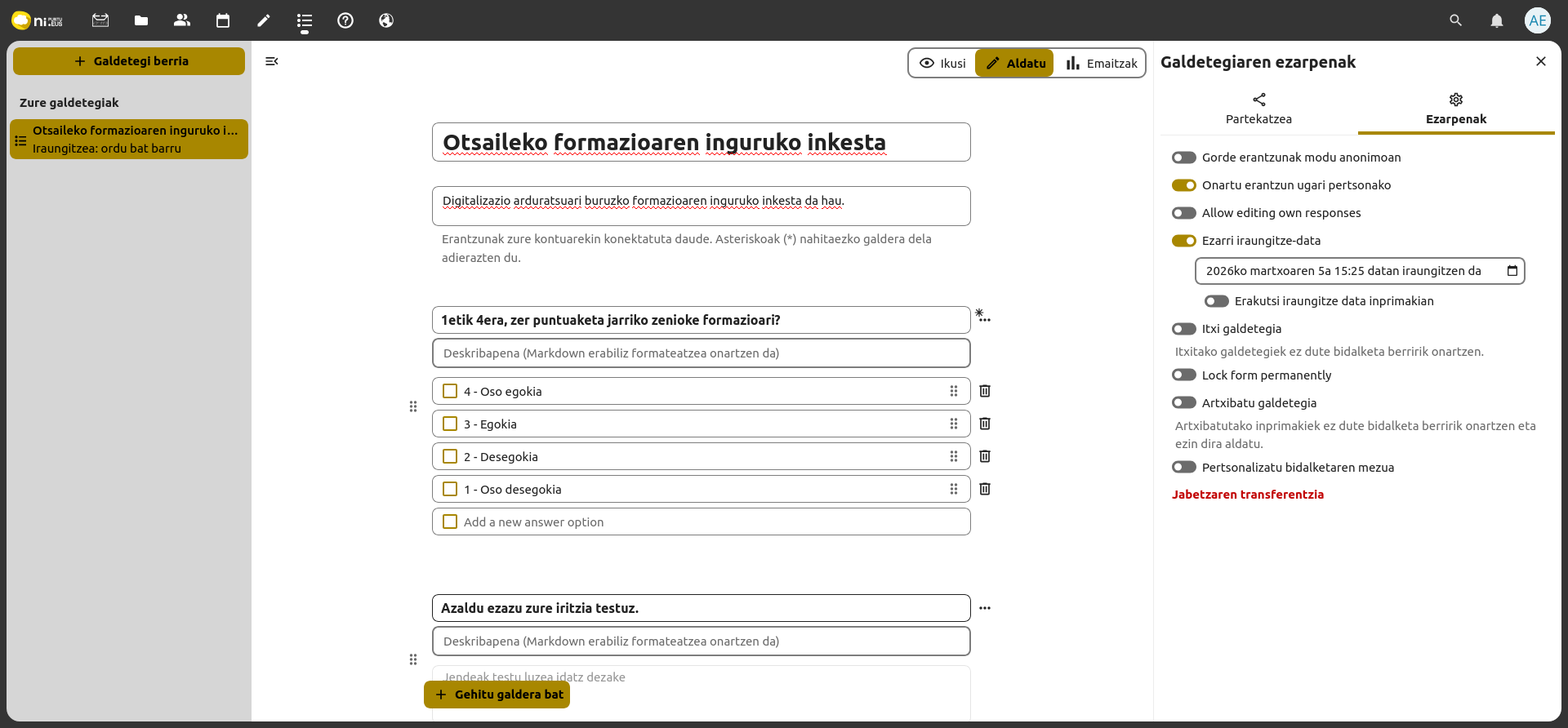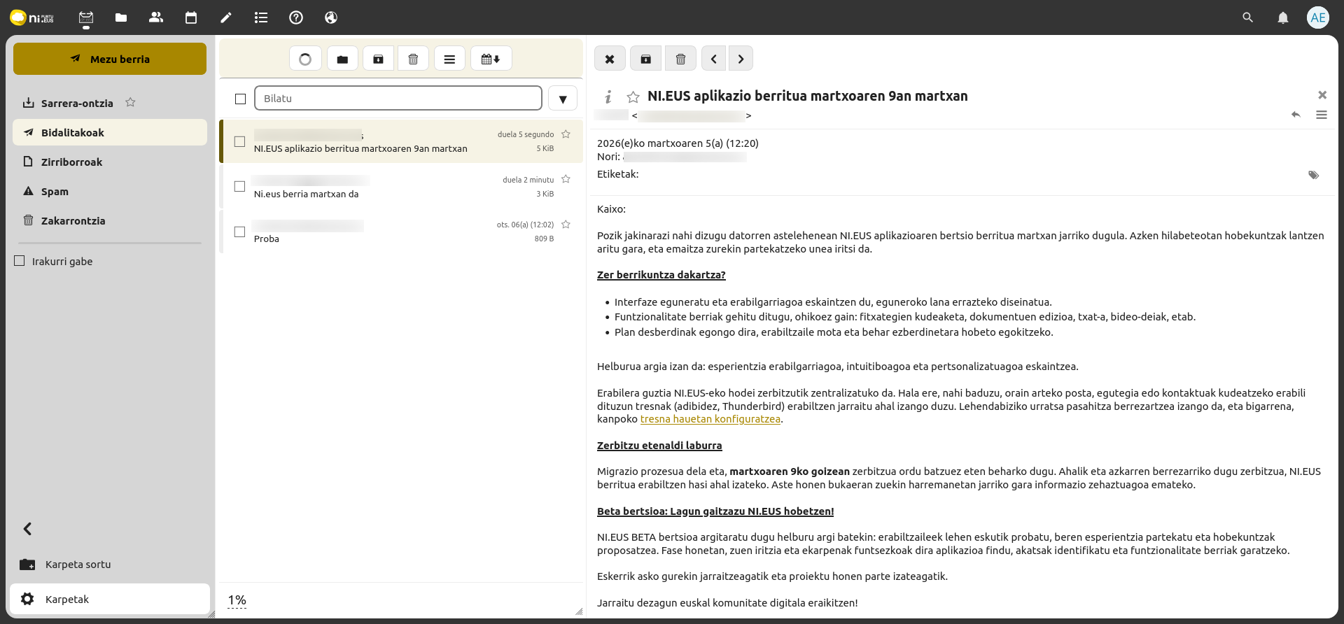 - Interfazea erabat berritu dugu, erabiltzailearen esperientzia ardatz hartuta: diseinu intuitiboagoa eta erabilerrazagoa landu dugu, eta, aldi berean, NI.eus markaren itxura eguneratu dugu.