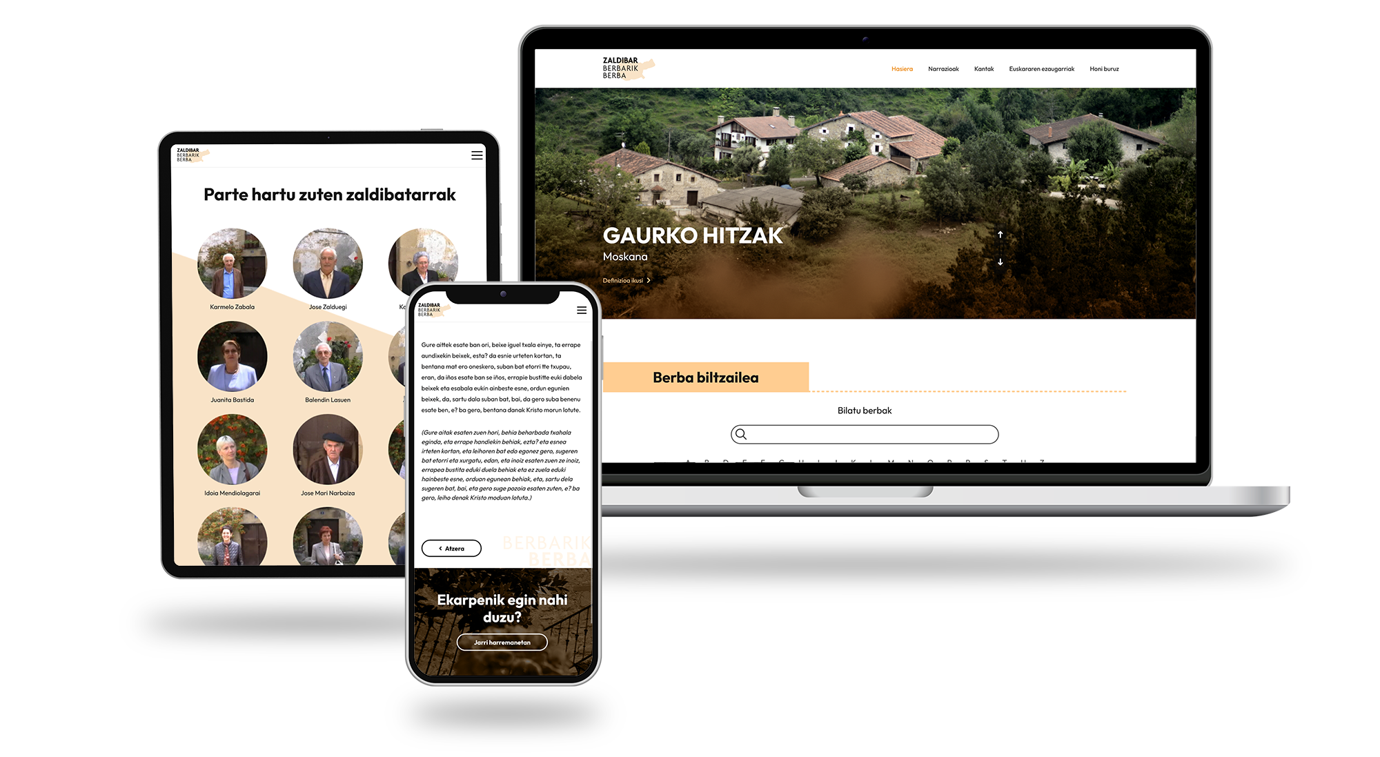 2003an ‘Zaldibar Berbarik Berba’ liburua argitaratu zen, Zaldibarko euskara ulertzeko eta sustatzeko ondare dokumentalista. Internetaren zabalpenaren harira, hamarkada baten ondoren ‘Zaldibar Berbarik Berba’ webgunea sortu zen, bertako eduki gehiena digitalizatuz. Proiektua gizarteratzen jarraitzeko ahalegin batean, webgunea birdiseinatu dugu, erabiltzaile esperientzia hobetuz eta itxura modernizatuz.